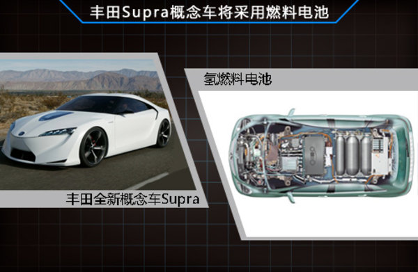 豐田全新Supra概念車則應用其最新研發的氫燃料電池,這是豐田和寶馬在燃料電池、輕量化技術和鋰離子電池等領域展開合作的首款搭載車型。該車可能會配 備一個高性能的混合動力系統,相對于豐田之前開發的氫動力汽車Highlander FCV-adv,新燃料電池組的體積小了三分之一,能量密度卻是FCV-adv所用電池組的兩倍。此外豐田Supra概念車還將應用大量輕量化的碳纖材質。