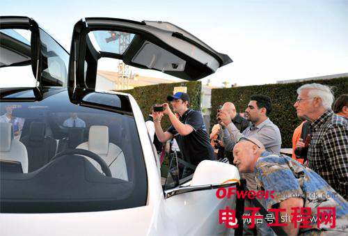 6月20日在特斯拉設計中心的展示會上賓客紛紛給Model-X拍照,這款車將在2014年上市