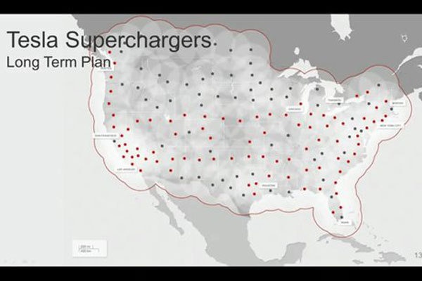 10.按照Tesla的計劃,在2015年左右Supercharger將覆蓋整個美國。一旦建成,這將是一個龐大的充電站網絡,其所帶來的附加價值十分可觀。此外,這個充電網絡將是美國乃至世界上第一個電動汽車能源供給網絡,在今后電動汽車普及時,Supercharger將成為充電樁的首選。