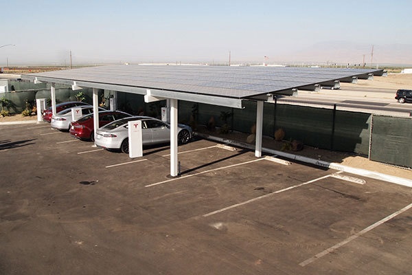 5.特斯拉位于加州Tejon的充電樁是第一個使用太陽能充電的充電樁。太陽能作為可再生資源是特斯拉汽車的不二選擇。同時也可以降低運營成本。
