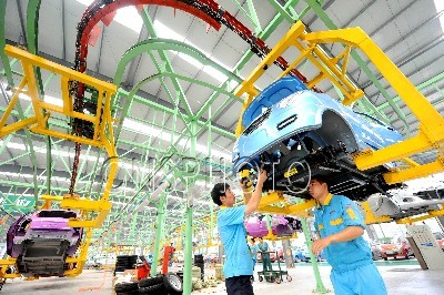8月14日,山東維動新能源汽車有限公司生產車間,工人正在組裝低速電動車。 圖片/CNSPHOTO 中國新聞圖片網