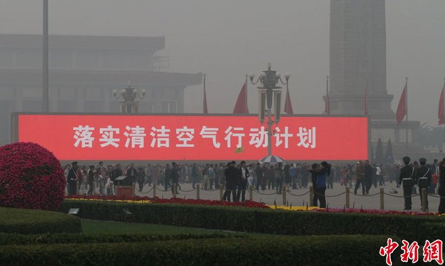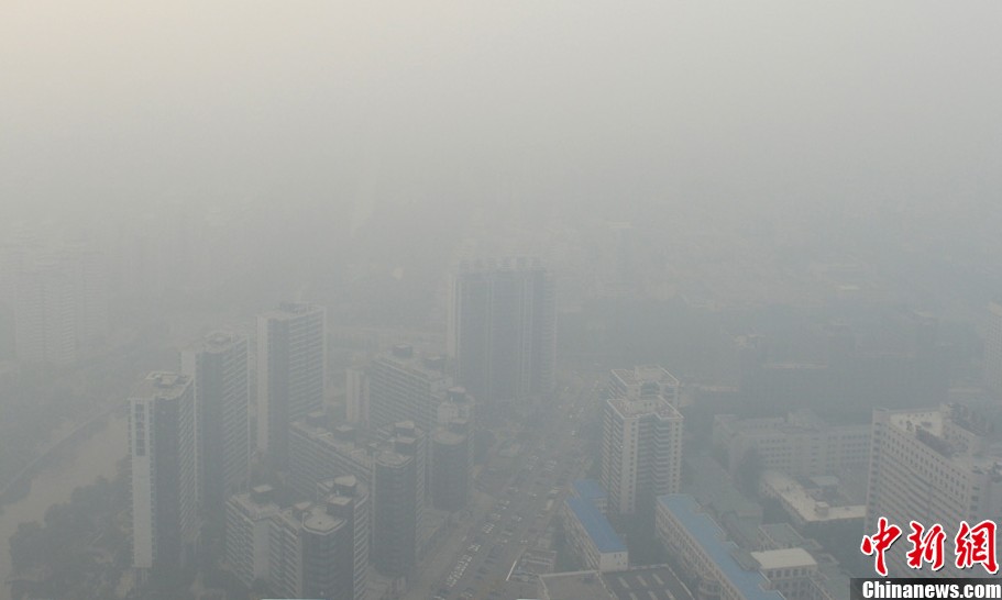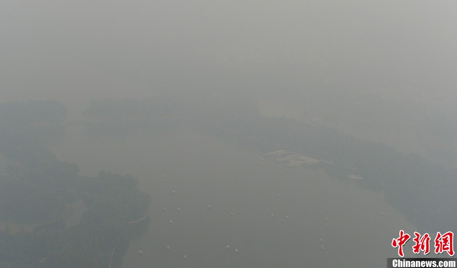 10月5日,從北京中央電視塔238米觀景平臺俯瞰嚴重污染的北京。當日,北京市PM2.5濃度已達重度污染。據(jù)中央氣象臺消息,中央氣象臺5日18時發(fā)布霾黃色預(yù)警,預(yù)計今天夜間到明天白天,河北大部、京津地區(qū)、山西東部和南部、河南北部等地有中度霾,局部地區(qū)有重度霾。廖攀/攝