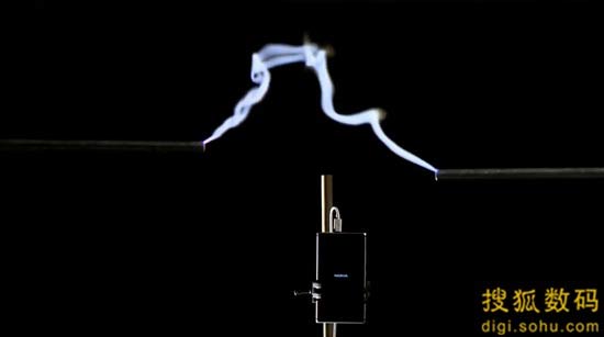 研究人員使用一部變壓器來模擬出了閃電,以讓“超過20萬伏的電壓通過300mm的間隙被輸送——從而達(dá)到近似閃電的光和熱”。隨后,發(fā)射出的能量被另一部變壓器所捕捉,從而給Lumia 925充電。當(dāng)然,這不過是證明閃電可以被捕捉、并為電子設(shè)備提供能源的第一步,接下來依然還有相當(dāng)長的路要走。