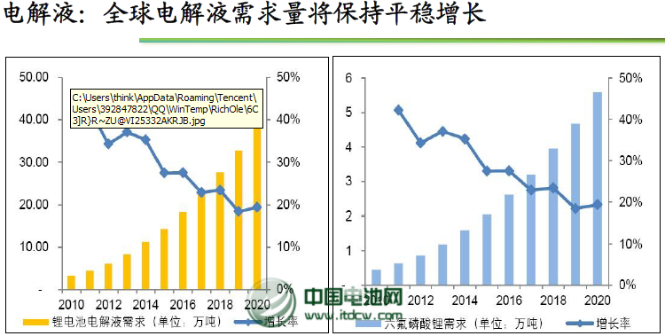 2012年,全球鋰離子電池電解液的需求量約為6.05萬噸左右。未來三年內,數碼類鋰離子電池需求增長較為穩定,而動力汽車、電站儲能等下游需求未來三年內難以爆發性增長,使得二次鋰離子電