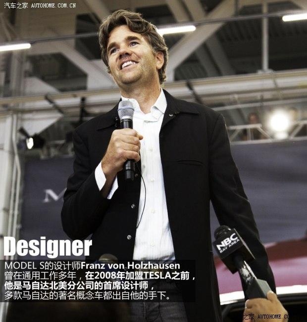 MODEL S的設(shè)計(jì)師Franz von Holzhausen畢業(yè)于加利福尼亞設(shè)計(jì)學(xué)院,是一位年輕的美國本土設(shè)計(jì)師,曾經(jīng)在大眾汽車擔(dān)任過助理設(shè)計(jì)師,后又在通用汽車下參與過雪佛蘭SS和龐蒂亞克Solstice等多款通用旗下車型的設(shè)計(jì)。在2008年加盟TESLA擔(dān)任設(shè)計(jì)主管之前,F(xiàn)ranz von Holzhausen則是馬自達(dá)北美分公司的首席設(shè)計(jì)師,馬自達(dá)旗下的Furai、Ryuga、Hakaze和Taiki等概念車均出自他的手下。