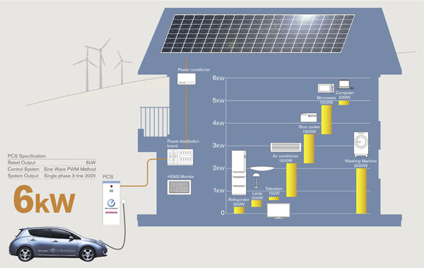 其基本原理是,通過PCS(Power Control System)將Leaf電動車與家用供電網(wǎng)絡(luò)對接。Leaf的電池會提供最大功率為6kW的電力輸出,這樣就能保證最耗電的家用電器(如微波爐、空調(diào)等)也能同時間正常運作,而不至于發(fā)生跳閘現(xiàn)象。這樣一套系統(tǒng)對于打造智能、低碳居所具有十分重要的意義,因為它把汽車這樣一個硬件也當(dāng)做“家用電器”涵蓋了進來。據(jù)悉,Leaf-To-Home系統(tǒng)的安裝價格是33萬日元(約合1.95萬人民幣),聽起來也并不便宜。