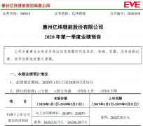 億緯鋰能一季度預計盈利超2.4億元 已完成向億緯集能增資6.5億元