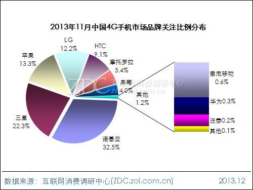 2013年11月中國手機市場上在售的4G機型數量還相對較少,但其用戶關注度卻呈持續攀升態勢。從品牌關注格局來看,本月4G手機市場上諾基亞成為用戶關注的焦點。整體來看,國外品牌在4G手機領...