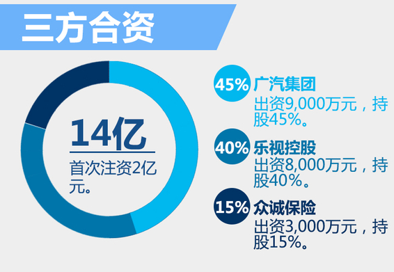 根據廣汽集團發布的公告,三方新建的合資公司首期投資為14億元,項目資金來源由廣汽集團、樂視控股(北京)有限公司及眾誠汽車保險股份有限公司共同出資。...
