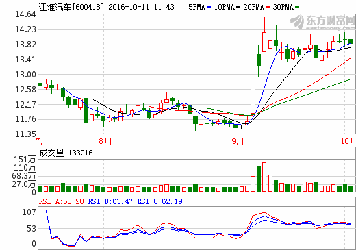 • 江淮汽車1-9月銷售新能源汽車13707輛 同比增長達125.18% 日期:2016-10-11 11:48:20 點擊:368 好評:0