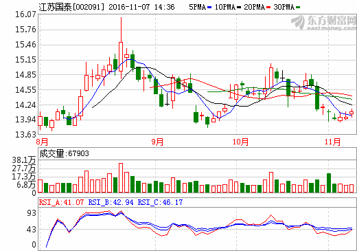 • 江蘇國(guó)泰:2016年前三季營(yíng)收57.34億元 凈利潤(rùn)2.42億元 日期:2016-11-07 14:28:39 點(diǎn)擊:294 好評(píng):0