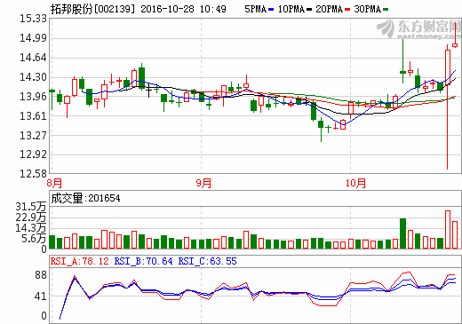 拓邦股份:2016中報凈利潤0.5億 同比增長34.08%