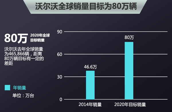 目前沃爾沃在成都和大慶的整車廠,以及張家口發動機工廠,是全球戰略布局的一部分,將為全球生產和供貨。根據沃爾沃的中期目標規劃,計劃在全球市場將實現年銷量80萬輛,中國市場的銷量目標為20萬輛。...