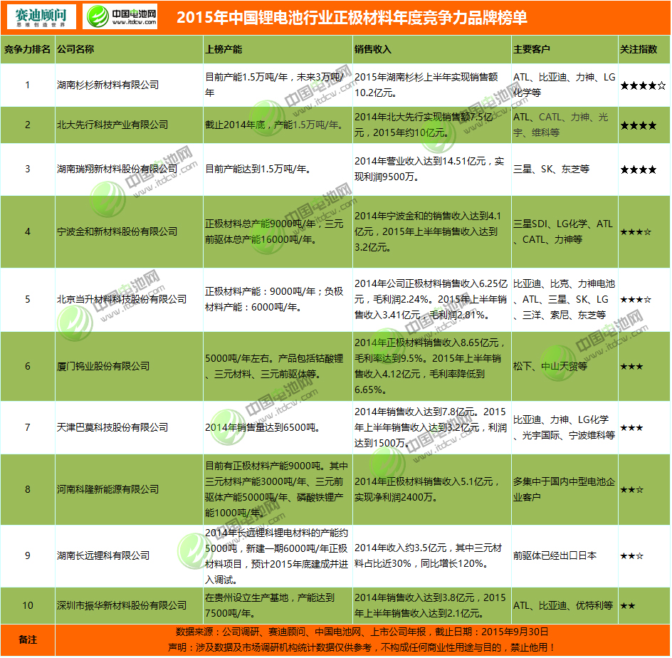 • 2015年鋰電池行業(yè)正極材料年度競爭力品牌榜單 日期:2015-10-10 14:35:20 點擊:6311 好評:0