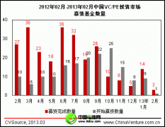 受春節(jié)假期影響,2013年2月份中國(guó)VC/PE市場(chǎng)活躍度出現(xiàn)明顯下滑。募資方面,僅3支基金募資完成,募資金額僅為10億元;投資方面,披露VC、PE投資案例共計(jì)17起,相比上個(gè)月下降50%;如不考慮京東商城7億美元巨額融資案例,投資規(guī)模也同樣大幅下滑。考慮到目前宏觀經(jīng)濟(jì)回暖緩慢、A股及美股市場(chǎng)IPO窗口持續(xù)關(guān)...